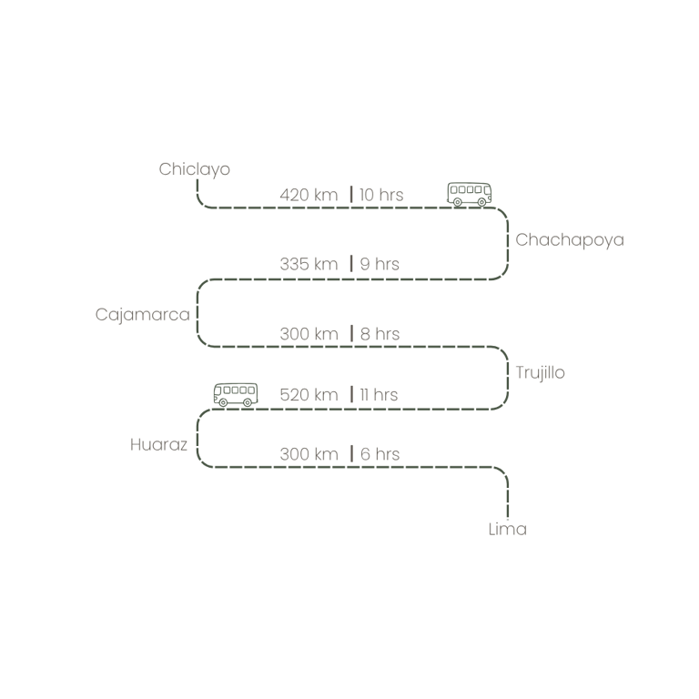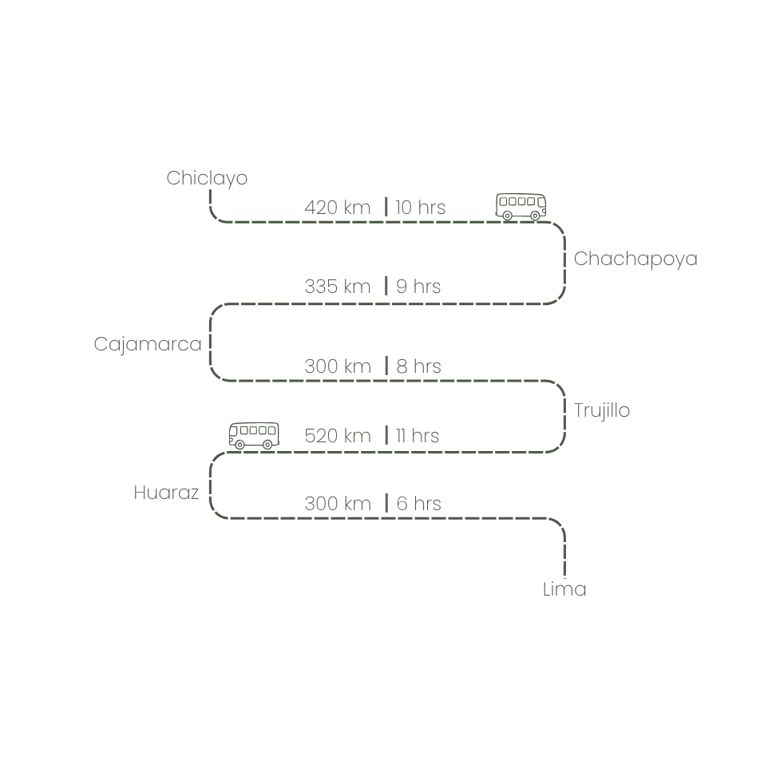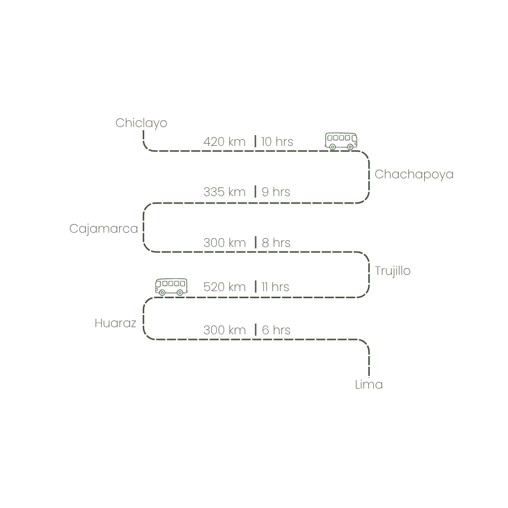 You can do it both ways, but this post follows the direction I did: Chiclayo → Chachapoyas → Cajamarca → Trujillo → Huaraz → Lima. You can travel it entirely by bus (which I did) or fly between Chiclayo and Lima if you’re short on time.