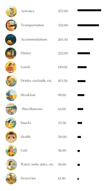 I used the Tripcoin app (not sponsored) to track my spending. Without it, I would have underestimated how much small expenses like snacks and coffees added up.