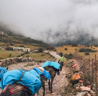 Even though your luggage can be carried by donkeys, I would still recommend packing light. For me, layers matter more than extra clothes, and good shoes matter more than anything. If I were to go again, I would bring an extra pair of hiking shoes with more ankle support and proper waterproofing for the wet days and shifting terrain.